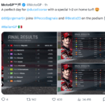 Martin, arrivato al Mugello con 37 punti di margine, ora vede dimezzarsi il suo vantaggio e ha 18 lunghezze su Bagnaia e 35 su Marquez, con Bastianini quarto a 57. Domani al Mugello un importante test, poi tutti ad Assen per il weekend del GP d’Olanda in programma dal 28 al 30 giugno.