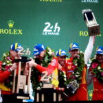 Un anno dopo aver vinto l’edizione del Centenario, Ferrari ottiene un nuovo successo alla 24 Ore di Le Mans 2024, la gara endurance più famosa e blasonata al mondo, firmando un’impresa destinata a rimanere indelebile nella storia del motorsport. A transitare per prima sotto la bandiera a scacchi di Le Mans, dopo aver completato 311 giri e raccogliendo l’applauso dei 329mila spettatori che hanno assistito all’evento (record di sempre per la 24 Ore di La Mans), è la 499P #50 del team ufficiale Ferrari – AF Corse condotta al traguardo da Nicklas Nielsen, che ha condiviso la vettura con Miguel Molina e Antonio Fuoco. Se la 499P #50 è stata la principale protagonista della 24 Ore, che ha condotto da leader per ben 72 giri, a completare una giornata destinata a rimanere nella memoria dei tifosi è la terza posizione al traguardo della Le Mans Hypercar “gemella”, la #51 di Alessandro Pier Guidi, James Calado e Antonio Giovinazzi – vincitori lo scorso anno sul circuito de La Sarthe – staccata di soli 36’’ rispetto ai compagni di squadra.