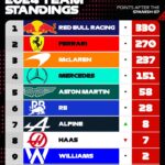 Quella di oggi è la vittoria numero 61 di Verstappen nella sua carriera, la quarta sulla pista dove otto anni fa conquistò il suo primo successo. Per la Red Bull si tratta della vittoria numero 120 nella storia, la settima in dieci gare disputate quest’anno: più della metà di questi successi sono arrivati grazie al pilota olandese.