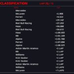 Pomeriggio impegnativo per Charles Leclerc, che ha recuperato da un incidente al primo giro con Piastri, risalendo fino all’11° posizione, dopo aver effettuato quattro pitstop. Alle due spalle, l’Alpine di Esteban Ocon, protagonista di un’accesa battaglia col compagno di squadra Gasly. 13° Lance Stroll, in un’altra domenica difficile per l’Aston Martin, seguito da Yuki Tsunoda e dalla Williams di Alex Albon. Ancora a zero punti la Kick Sauber, con Valtteri Bottas e Zhou Guanyu 16° e 17°. Per Fernando Alonso la soddisfazione del giro più veloce, ma ha chiuso 18°, davanti all’ultimo classificato, Logan Sargeant. A Norris, dopo la delusione cocente di una gara buttata via e del ritiro, anche la beffa di una penalità di 5 secondi per aver superato i track limits.
