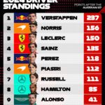 La McLaren salva la domenica con il secondo posto di Oscar Piastri, con la Ferrari di Carlos Sainz terza. Quarta la Mercedes di Lewis Hamilton, davanti a Verstappen, posizione mantenuta nonostante la penalità di 10 secondi per l’incidente con Norris. Ottima prestazione per la Haas, con Nico Hulkenberg e Kevin Magnussen 6° e 8°, divisi da Sergio Perez. A chiudere la top 10, la RB di Daniel Ricciardo e l’Alpine di Pierre Gasly.