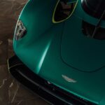 All’interno dell’abitacolo si estende ulteriormente la fibra di carbonio a vista, e le strisce di Alcantara nero puro sono abbinate alle cuciture AMR Lime a contrasto. Il celebre logo di Alonso è ricamato anche sui poggiatesta con lo stesso filo AMR Lime.