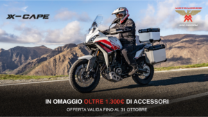 Moto Morini continua le promozioni fino al 31 ottobre sui modelli in gamma. Con l’acquisto di X-Cape 650 si ottiene un kit di accessori del valore di 1.319 euro, compreso nel prezzo, che comprende il set paramani e il tris di valigie (con bauletto da 38 litri e borse laterali da 34 litri) Questo equipaggiamento in omaggio sarà consegnato entro 90 giorni dall’immatricolazione del nuovo veicolo. Sulla SEIEMMEZZO, nelle due versioni SCR e STR, Moto Morini applica un vantaggio di 650 €. Questo speciale sconto può essere applicato ad esempio alla supervalutazione dell’usato, sull’acquisto degli accessori o come contributo sul prezzo f.c. del veicolo. Tutte le offerte sono valide presso i concessionari autorizzati Moto Morini aderenti all’iniziativa. Per ulteriori informazioni si può visitare la pagina dedicata alle promozioni.