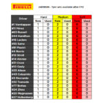 Dal punto di vista dell’utilizzo dei pneumatici, il colpo d’occhio è molto diverso rispetto al venerdì della scorsa settimana a Baku, pur se le tre mescole da asciutto sono le stesse. Se in Azerbaijan, infatti, il bianco che contraddistingue la Hard era praticamente invisibile – solo due squadre, Alpine e Mercedes, le avevano nei fatti utilizzate per dei run significativi, qui tutti i piloti hanno usato un set di C3: tredici nella prima sessione, sette nella seconda. Variegato anche il quadro “cromatico” dei long run, con tutte e tre le mescole che sono state utilizzate nelle simulazioni in vista della gara di domenica, anche quella Soft che, tradizionalmente, non è mai stata una mescola molto usata in gara.