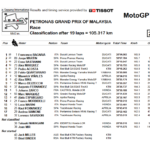 Bastianini si porta su Morbidelli e poi lo passa: poco dopo Franco cade, mentre Enea mette nel mirino Marquez che però – con oltre due secondi e mezzo di margine – finisce a terra. A cinque giri dalla fine Martin inizia a recuperare su Bagnaia mentre Bastianini è terzo in solitaria davanti ad Alex Marquez e Acosta. Martin rischia in un paio di occasioni e questo permette a Bagnaia di allungare in modo definitivo sullo spagnolo. Podio per Bastianini che precede Alex Marquez, Acosta, Quartararo, Viñales, Rins e Marco Bezzecchi (Pertamina Enduro VR46 Racing Team). Augusto Fernandez (Red Bull GASGAS Tech3) completa la top ten. Marc Marquez – ripartito dopo la caduta – chiude 12°: conquista quattro punti e ora ne ha soltanto uno di vantaggio su Bastianini nel testa a testa per il terzo posto della classifica. L’ultimo appuntamento della stagione che sostituirà il GP della Comunità Valenciana, cancellato a causa dell’alluvione che ha colpito la regione spagnola, sarà quindi decisivo per l’assegnazione del Titolo 2024.