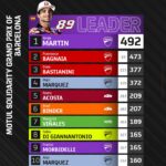 Ai piedi del podio Aleix Espargaro (Aprilia Racing), seguito da Alex Marquez (Gresini Racing MotoGP). Sesto Franco Morbidelli (Prima Pramac Racing), poi Marc Marquez (Gresini Racing MotoGP), Marco Bezzecchi (Pertamina Enduro VR46 Racing Team) e Brad Binder (Red Bull KTM Factory Racing). Alla vigilia della Sprint, Bagnaia e Martin erano divisi da 24 lunghezze, che adesso si sono ridotte a 19. Sarà quindi l’ultimo GP della stagione a decidere chi sarà il campione 2024. Il via alle 14.00.