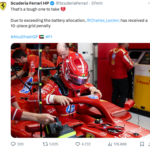 Considerazione personale: per scaramanzia certe cose non andrebbero mai non solo dette, ma nemmeno pensate: nel comunicato di ieri sull’incontro coi media, Charles Leclerc se ne è uscito con una frase che ci ha subito colpiti: “Dal canto nostro dobbiamo mettere in atto l’esecuzione perfetta, perché ci serve una doppietta, e poi occorre probabilmente che qualcosa vada storto ai nostri avversari“. Mai sentito parlare di karma, Charles? Mai augurare il male ad altri o contare sulle disgrazie altrui, perché ritorna, sempre, come un boomerang che, in questo caso, ha la forma di un pacco batteria…