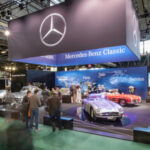 Mercedes-Benz metterà in vendita al Salone Rétromobile anche due veicoli con la leggendaria denominazione di modello 300 SL. Una di queste, una 300 SL “Gullwing” (W 198), risale al 1955. Questa coupé è sottoposta a un attento restauro presso il Mercedes-Benz Classic Centre. La carrozzeria, già finita, è esposta allo stand. L’esposizione documenta il modo in cui gli esperti procedono: l’obiettivo è sempre quello di preservare i componenti originali. Se ciò non è completamente possibile, inseriscono professionalmente nuove sezioni di lamiera. i futuri proprietari della leggendaria supersportiva possono ammirare nel dettaglio il veicolo e i lavori fino al suo completamento presso Rétromobile. La “Gullwing” sarà verniciata in grigio argento metallizzato (DB180) come precedentemente, con gli interni in gabardine a scacchi blu-grigio (L1).