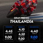 Il primo round della stagione 2025 del Motomondiale va in scena in Thailandia sul Circuito Internazionale di Buriram. Dopo la conferenza stampa piloti di giovedì, le prime sessioni di prove libere nella notte tra giovedì e venerdì, a partire dalle 2.55 con la Moto3 e la Moto2 ad anticipare la prima sessione di MotoGP in programma alle 4.40. Alle 8.55 – per la Classe Regina – sarà il momento delle pre-qualifiche. Nella notte tra venerdì e sabato, al termine dell’ultima sessione di libere scatta la caccia alla pole, con la MotoGP che parte alle 4.45, mentre alle 8.55 si assegnano i primi punti del weekend con la Sprint. Domenica alle prime ore del mattino le gare, con la Moto3 che scatta alle 6, la Moto2 alle 7.15 e la MotoGP alle 9. Tutto il fine settimana sarà visibile su Sky Sport Uno, Sky Sport MotoGP e in streaming su NOW.