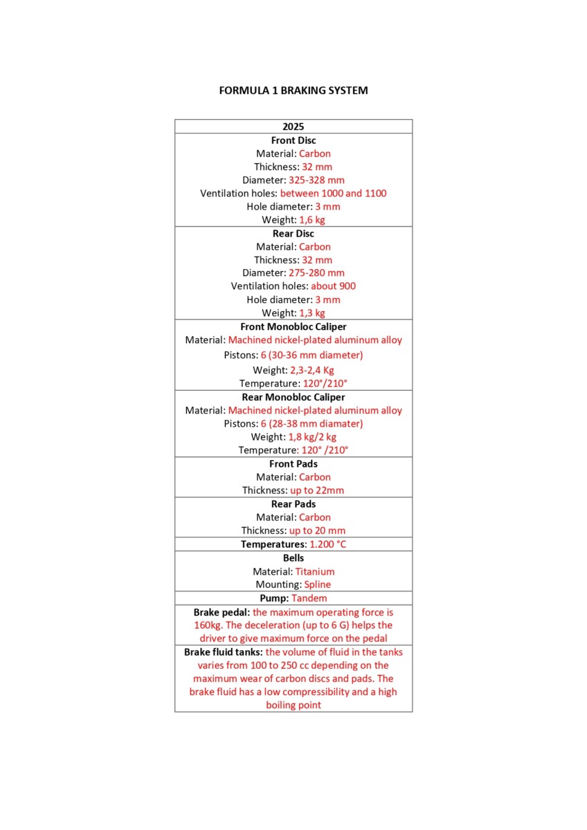 Nel 2025, Brembo conferma la sua presenza completa sulla griglia di partenza: il Gruppo Brembo fornirà nuovamente le sue pinze a tutti i 10 team. In particolare, 9 team utilizzeranno pinze Brembo, mentre un team sarà equipaggiato con pinze AP Racing, azienda con sede a Coventry e parte del gruppo bergamasco. Brembo fornirà quindi a tutti i piloti in griglia pinze fino a 6 pistoni, il numero massimo consentito dal regolamento, realizzate in lega d’alluminio ricavate dal pieno e nichelate.