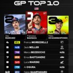 Nelle prime fasi Di Giannantonio sembrava in grado di tenere il passo di Bagnaia e Di Giannantonio, ma ha poi perso terreno. Dietro di lui, quarto, è finito il compagno di squadra Franco Morbidelli, protagonista in apertura di una intensa lotta con Jack Miller. L’australiano in sella alla M1 del team Prima Pramac Yamaha ha chiuso quinto, graziato nel finale dalla caduta di Fermin Aldeguer (BK8 Gresini Racing MotoGP), La sesta piazza è così andata al riminese Marco Bezzecchi. L’ufficiale Aprilia Racing ha chiuso davanti a Enea Bastianini (Red Bull KTM Tech3), autore di una rimonta iniziata dalla 17° casella dello schieramento e terminata dieci posizioni più avanti. A seguire Luca Marini, il migliore in sella alla RC213V con i colori del Repsol Honda Team. La classifica vede ora Alex Marquez in testa con un punto di vantaggio sul fratello Marc. Bagnaia si trova invece a -12. Prossimo round fra due settimane in Qatar per il quarto appuntamento della stagione.