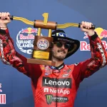 Il GP delle Americhe è stato vinto da Francesco Bagnaia, al primo successo stagionale con il Ducati Lenovo Team. Una gara scattata in ritardo a causa dell’improvvisa ‘fuga’ di alcuni piloti dalla griglia, ricca di errori e con un colpo di scena che ha visto il leader cadere mentre aveva circa 2 secondi di vantaggio sugli inseguitori. Sul podio assieme a Bagnaia, Alex Marquez (Gresini Racing MotoGP) che, grazie ai 20 punti raccolti, balza in testa alla classifica iridata, terzo Fabio Di Giannantonio (Pertamina Enduro VR46 Racing Team).