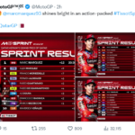 La rimonta non è invece riuscita a Francesco Bagniaia (Ducati Lenovo Team), che ha chiuso sottotono un sabato da dimenticare. Caduto nelle qualifiche e partito dall’undicesima casella, non è mai parso a suo agio e ha chiuso ottavo grazie al crollo finale di Maverick Vinales (Red Bull KTM Tech3), decimo alla bandiera a scacchi. Settimo posto per Ai Ogura (Trackhouse Racing MotoGP), nono per Marco Bezzecchi (Aprilia Racing), entrambi in sella alle RS-GP di Noale. Più arretrato Jorge Martin, che ha chiuso la Sprint in 16° posizione. Adesso occhi puntati sulla gara, che prenderà il via alle 19.00.