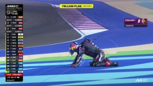 Gara complessa per il campione del mondo in carica Jorge Martin (Aprilia Racing), che è caduto poco oltre metà gara mentre era 17°. Al termine del weekend in Qatar, Marc Marquez allunga in classifica portandosi a 123 punti, seguito dal fratello Alex a 106 e da Francesco Bagnaia a 97. Prossimo round a Jerez fra due settimane.