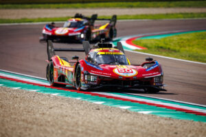 All’Autodromo Internazionale Enzo e Dino Ferrari la 499P numero 51 si è dimostrata la più veloce sia nel terzo turno di prove libere, in mattinata, sia nelle decisive prove cronometrate del pomeriggio, andate in scena in condizioni di pista asciutta. Giovinazzi, con un riferimento cronometrico di 1’29”623, ha registrato il primo tempo in qualifica, precedendo di 370 millesimi la Ferrari numero 83 affidata a Robert Kubica. Sulla vettura numero Antonio Fuoco ha visto i due giri veloci cancellati a causa di altrettanti track limits che non hanno permesso al pilota, vincitore con Molina e Nielsen della 1812 KM del Qatar lo scorso 28 febbraio, di accedere al turno riservato alle migliori dieci vetture. Nella decisiva sessione di Hypepole Giovinazzi – che condivide la Ferrari numero 51 con Alessandro Pier Guidi e James Calado – si è confermato il pilota più veloce limando ulteriormente il proprio tempo, completando un giro in 1’28”920 e staccando di 0’’758 la 499P in livrea Giallo Modena.