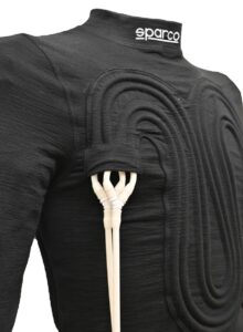 Il COOLING TOP R586 UNDERWEAR, viene così indossato dai piloti sotto la tuta da gara come base layer refrigerante e si attiva una volta collegato al chiller della vettura. Il comfort termico dei piloti viene infatti compromesso per via degli spazi chiusi e riscaldati della vettura, che ostacolano in modo particolare la dispersione del calore, e per via di altri fattori, come lo stress emotivo legato alla competizione che può amplificarne la percezione, o le location di gara in cui le temperature sono più elevate. A causa del crescente disagio dovuto all’aumento della temperatura cutanea, i piloti possono subire un calo delle proprie capacità cognitive, disidratarsi e avere crampi muscolari, con altri effetti negativi sulle condizioni di salute, che si riflettono sulle performance di gara.