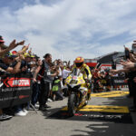 La WorldSBK ha visto i piloti impegnati in mattinata nella Superpole, dove Nicolò Bulega ha non solo centrato la sesta pole position in carriera, ma ha inoltre stabilito il nuovo record della pista in 1:27.866. Un tempo maturato a un minuto dalla fine della sessione, permettendo all’emiliano di battere nel finale un ottimo Sam Lowes, secondo davanti al campione in carica Toprak Razgatlioglu, terzo. Sesto Andrea Iannone, mentre solo tredicesimo è risultato Danilo Petrucci, che non è riuscito a migliorarsi nel finale dopo essere stato ostacolato dal traffico. Gara-1 ha poi visto Bulega portare a casa uno splendido successo, in seguito a un grande duello con Razgatlioglu, vinto dall’emiliano che ha poi staccato il resto del gruppo. Bulega ha portato a casa il successo con 2.835s di margine su Razgatlioglu, secondo al traguardo; terzo Alvaro Bautista, abile a staccare il resto del gruppo ma lontano dal duo di testa. Ottimo quarto posto per Iannone, che ha contenuto gli attacchi di Vierge e Remy Gardner nel finale di corsa. Settimo posto finale invece per Danilo Petrucci, capace di recuperare terreno con ottimi sorpassi dopo il tredicesimo posto maturato in Superpole.