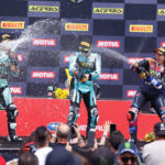 Un sabato trionfale per i colori azzurri si è poi concluso con la vittoria di Stefano Manzi nella prima manche del WorldSSP. Il riminese, leader del campionato dopo i primi tre appuntamenti, ha portato a casa il successo al termine di una corsa spettacolare e combattuta, che lo ha visto recuperare dal terzo posto in griglia di partenza. Manzi ha preceduto di soli 344 millesimi sul traguardo Tom Booth-Amos, che ha provato invano a togliere il successo all’italiano nel corso delle ultime tornate. Terza piazza per Valentin Debise, mentre Filippo Farioli ha terminato in ottava posizione, portando a due il numero di piloti italiani in top-10. Il poleman della corsa, Federico Caricasulo, ha invece concluso al 14esimo posto.