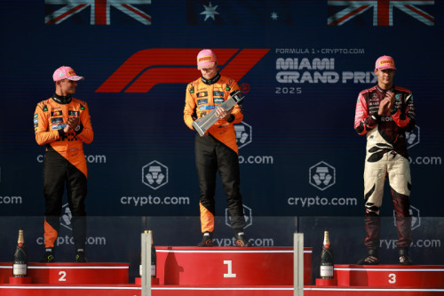 Bottino pieno per la McLaren nel fine settimana di Miami: doppietta nella Sprint e doppietta nel GP, per un totale di 58 punti all’attivo. Se sabato era stato Lando Norris a passare per primo sotto la bandiera a scacchi oggi l’ordine d’arrivo fra i due piloti si è invertito con Oscar Piastri davanti al compagno di squadra. Il pilota australiano ha vinto il quarto Gran Premio della stagione, il terzo consecutivo e il sesto nella carriera. Per la McLaren è la doppietta #51 nella storia, la seconda nella stagione. Sul podio è salito per la quarta volta quest’anno George Russell (Mercedes): una volta secondo e tre volte terzo.
