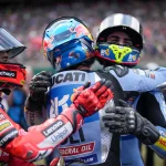 Quinto sotto alla bandiera a scacchi Maverick Vinales (Red Bull KTM Tech3), che nelle fasi iniziali faceva parte di un trio di RC16 collocato fra la quinta e la settima posizione. Insieme a lui la coppia Red Bull KTM Factory Racing formata Pedro Acosta e Brad Binder. Il sudafricano è caduto al quinto dei tredici passaggi previsti, lo spagnolo all’ultimo, mentre era davanti a Vinales. Risalito in sella, ha chiuso 19esimo. Di qualche giorno fa un intervento chirurgico al braccio destro al quale si è sottoposto per sindrome compartimentale. Sesta posizione per Johann Zarco (Castrol Honda LCR), il migliore in sella alla RC213V. Fra le Aprilia Raul Fernandez (Trackhouse Racing MotoGP) è stato il più concreto: decimo. Nelle fasi iniziali l’ufficiale Marco Bezzecchi era quinto, ma ha poi commesso un errore che l’ha relegato nelle retrovie.