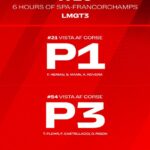 Le Ferrari 296 LMGT3 di Vista AF Corse terminano la 6 Ore di Spa-Francorchamps, terzo appuntamento del FIA WEC 2025, con una vittoria e un terzo posto. L’equipaggio numero 21 di François Heriau, Simon Mann e del pilota ufficiale Alessio Rovera ha conquistato il successo, mentre la vettura gemella numero 54 di Thomas Flohr, Francesco Castellacci e dell’ufficiale Davide Rigon ha chiuso sul terzo gradino del podio. Giornata straordinaria per il Cavallino Rampante, che ha conquistato una doppietta anche nella classe assoluta con la 499P numero 51 davanti alla numero 50.