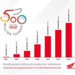 Honda raggiunge un traguardo storico: la produzione cumulativa globale di motociclette ha superato i 500 milioni di unità. Un incredibile primato mondiale che arriva dopo 76 anni dall’avvio della produzione di serie, iniziata con la storica D-Type nel 1949. Sin dalla sua fondazione nel 1948, Honda ha progettato e fornito soluzioni di mobilità che soddisfacessero i bisogni dei clienti sparsi in diverse regioni del mondo, che è poi diventata la propria filosofia progettuale e costruttiva: “Lo scopo della tecnologia è rendere la vita delle persone più facile”.