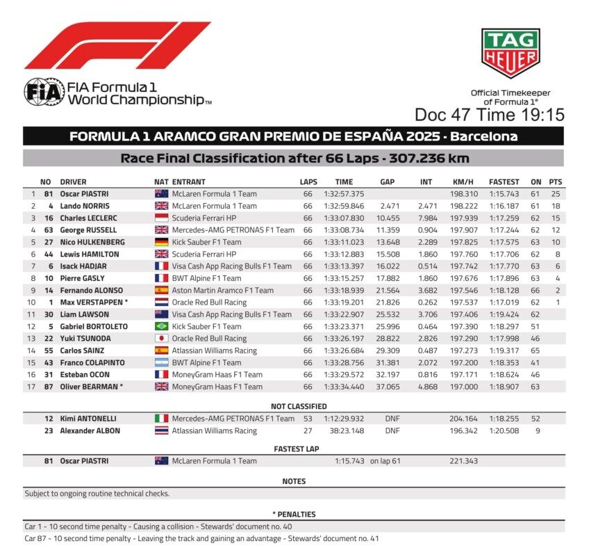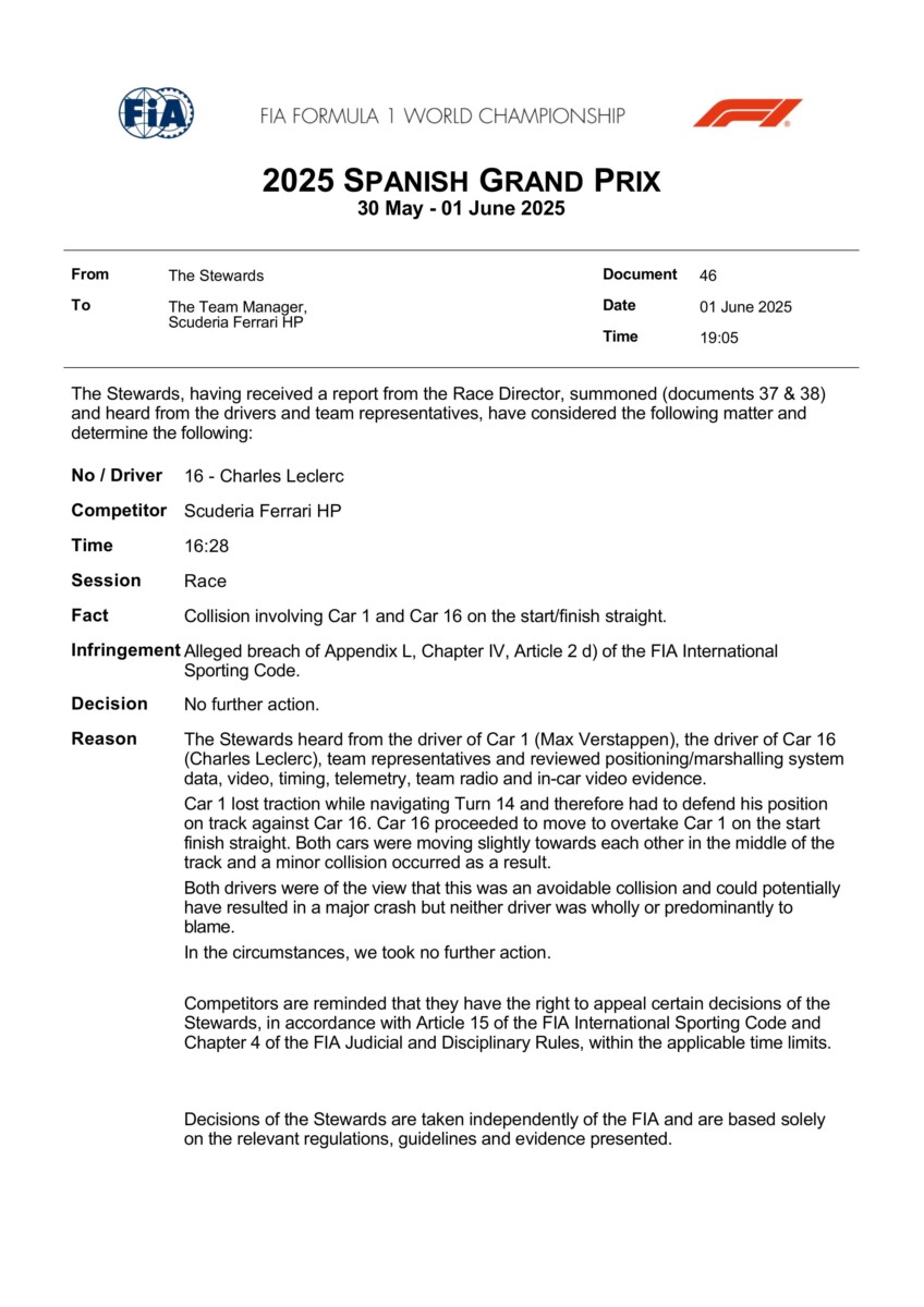 AGGIORNAMENTO: alle 19.05 la decisione dei commissari: no further action per il contatto tra Leclerc e Verstappen sul rettilineo principale. Sotto le classifiche definitive.