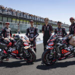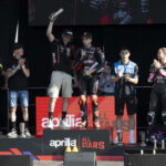 Marco è stato festeggiato proprio nella sua Romagna e altrettanti applausi hanno ricevuto le star MotoGP di Aprilia, Lorenzo Savadori e Raul Fernandez e, primo tra tutti, il campione del mondo Jorge Martin. Lo spagnolo, in recupero dopo l’incidente nel GP del Qatar, non si è risparmiato, incontrando tifosi e appassionati e sorprendendo tutti al sabato, quando, del tutto inaspettatamente, ha percorso i suoi primi giri di pista dopo l’incidente, prima con una Aprilia RS 660 Factory e poi in sella alla regina Aprilia RSV4.