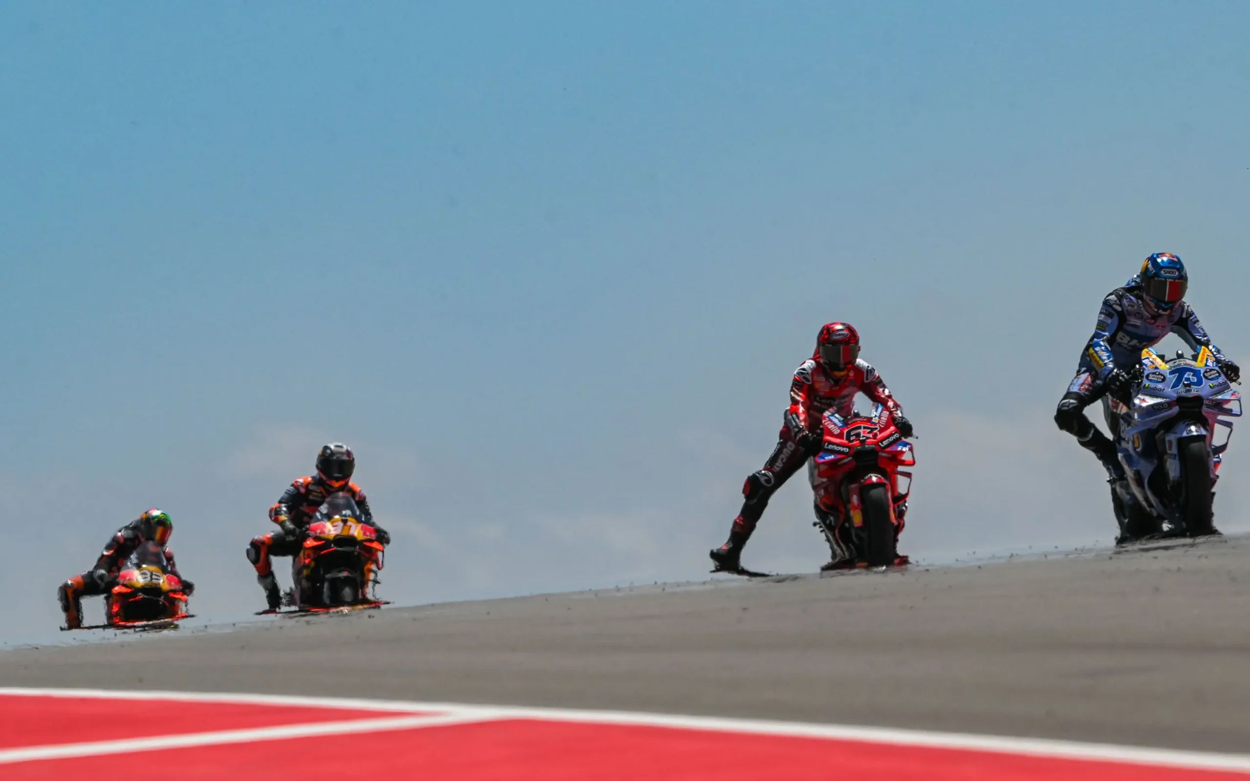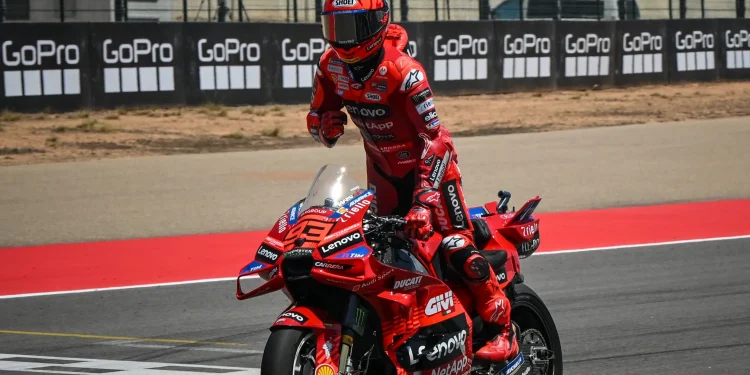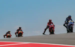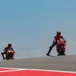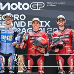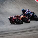 Ben più animata la domenica di Bagnaia, che nelle fasi iniziali ha dovuto lottare per difendersi dagli attacchi di Pedro Acosta (Red Bull KTM Factory Racing), l’unico della griglia a montare uno pneumatico anteriore duro e non medio, con maggiore sostegno in frenata. L’italiano è riuscito a spuntarla e a metà gara sembrava poter affondare i denti nel codone della GP24 di Alex Marquez, ma non c’è riuscito. Ha così chiuso terzo.