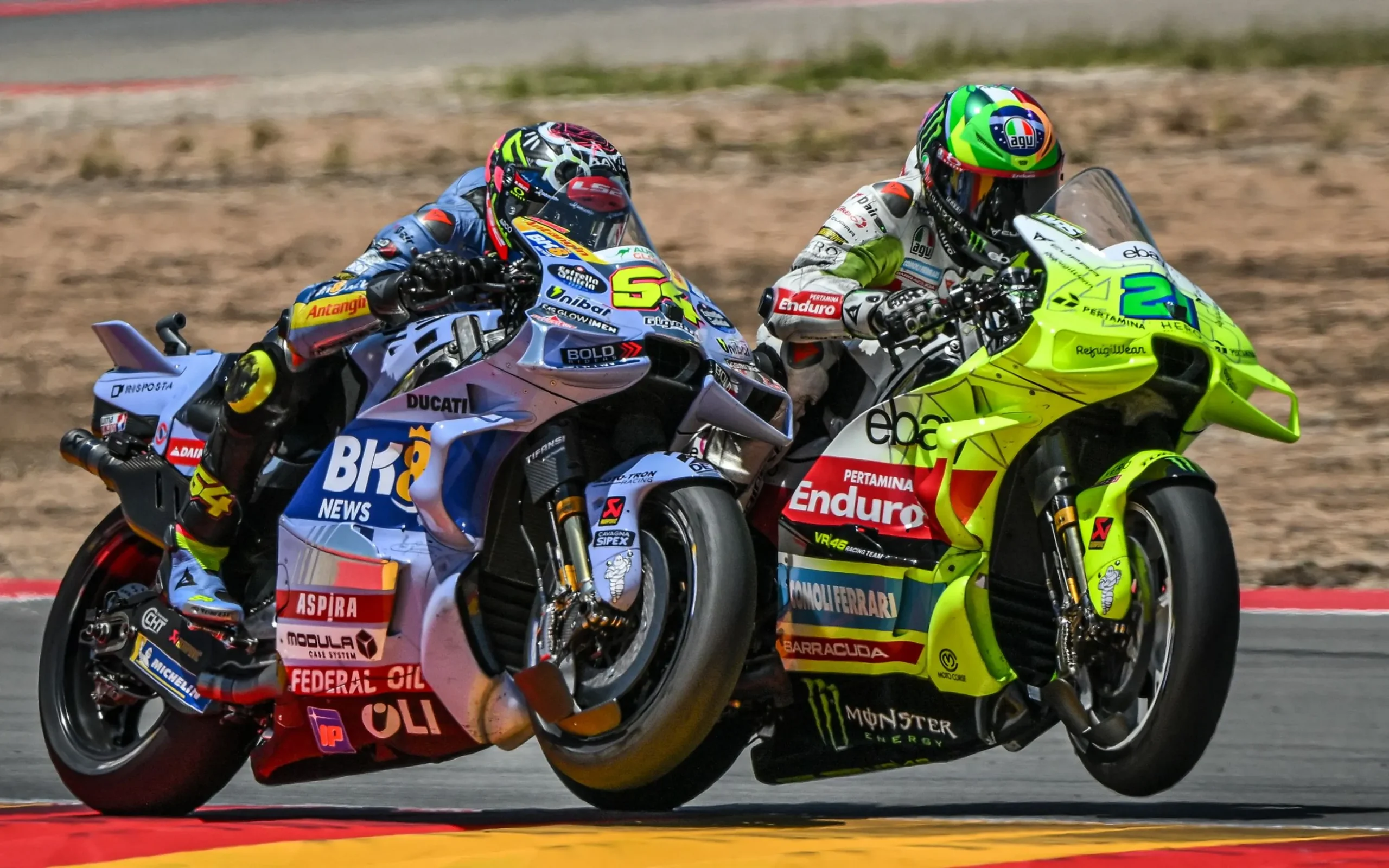 Quarto in solitaria Acosta, mentre la quinta piazza è stata combattutissima. Protagonisti Franco Morbidelli (Pertamina Enduro VR46 Racing Team) e Fermin Aldeguer (BK8 Gresini Racing MotoGP), che durante la gara se le sono date di santa ragione. Al penultimo giro, in particolare, sono arrivati alla terzultima curva insieme e c’è scappato pure un contatto. Nessuno dei due sembrava disposto a mollare: in uscita, gomiti e ginocchia larghi, la GP24 del numero 21 aveva la ruota anteriore staccata da terra, mentre la Ducati dello spagnolo ha registrato un vistoso scossone. A spuntarla, alla fine, è stato Morbidelli.