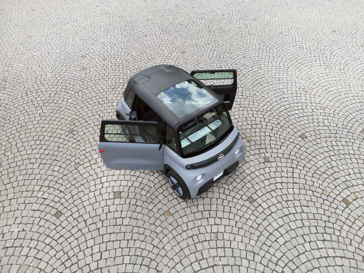 Come tutti gli altri modelli Opel, la piccola Rocks è dotata del caratteristico Opel Vizor e si concentra sull’essenziale con il suo design pulito, sia all’esterno che all’interno. La due posti particolarmente maneggevole ha in serbo anche un’insolita sorpresa per un veicolo di questa categoria: il tetto panoramico di serie. Come per i suoi fratelli maggiori Opel, questo crea un’atmosfera leggera e piacevole nel quadriciclo. Il tetto panoramico è realizzato in vetro temperato di sicurezza, così come i vetri laterali e il lunotto, aumentando così la sicurezza.