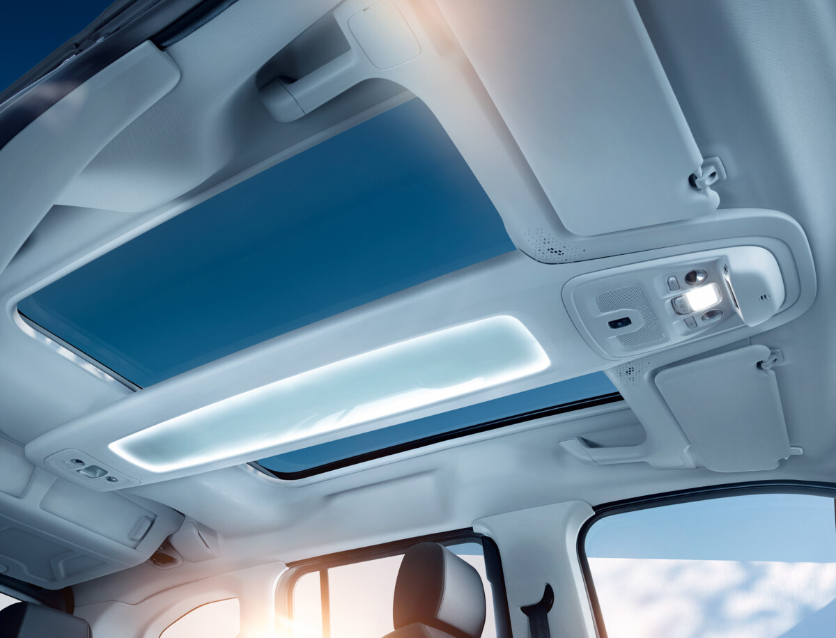 Anche l’emozione e il senso dello spazio, combinati con vantaggi pratici, sono molto importanti per Opel Combo Electric. La versione lunga 4,41 metri ha già molto spazio per un massimo di cinque persone, compresi i bagagli. Inoltre, caratteristiche come il lunotto apribile separatamente nel portellone posteriore facilitano l’accesso al vano di carico. E anche qui i passeggeri possono dare uno sguardo straordinario all’ambiente circostante grazie al tetto panoramico con protezione solare attivata elettricamente. Come è tipico di Opel Combo, tuttavia, il tetto panoramico ha in serbo altri vantaggi: ha una galleria centrale sul tetto che può essere utilizzata in vari modi. L’attuale generazione di veicoli offre fino a 186 litri di capacità aggiuntiva per le necessità quotidiane grazie a 27 opzioni di stivaggio nell’abitacolo e nella galleria del tetto.