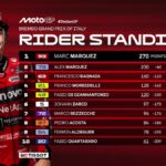 Gara più complicata per Morbidelli, che scattava dalla sesta posizione ed è entrato nella lotta per il podio dai primi giri. Un contatto e una penalità hanno condizionato la sua gara, in cui ha comunque mostrato un buon ritmo. Nonostante gli imprevisti, Franco ha chiuso il Gran Premio d’Italia in sesta posizione e mantiene il quarto posto nella classifica generale con 128 punti.