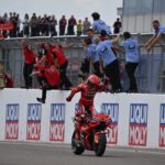 La terza posizione è andata a Francesco Bagnaia (Ducati Lenovo Team), scattato dalla decima casella e quinto prima delle debacle dei due italiani. Sotto la bandiera a scacchi ha accusato sette decimi di ritardo da Alex Marquez, che ha incassato oltre 6 secondi dal fratello Marc. Ai piedi del podio Fabio Quartararo (Monster Energy Yamaha MotoGP), che nel finale è riuscito ad arginare Fermin Aldeguer (BK8 Gresini Racing MotoGP), in rimonta dopo un avvio dalla dodicesima casella.