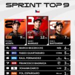 La ragione principale: la necessità di mantenere la pressione del pneumatico anteriore entro i parametri stabiliti dal regolamento, in una gara che ha visto il secondo e terzo gradino del podio andare a due piloti KTM, Pedro Acosta ed Enea Bastianini. Quarto Marco Bezzecchi (Aprilia Racing), poi Quartararo. Bagnaia, sesto fino all’ultimo giro, ha ceduto nel finale a Raul Fernandez (Trackhouse MotoGP Team). A punti anche Johann Zarco (Castrol Honda LCR), ottavo, e Pol Espargaro (Red Bull KTM Tech3), nono. Il campione del mondo Jorge Martin (Aprilia Racing), abbastanza vicino ai primi nelle fasi iniziali, ha terminato la Sprint in 11° piazza, alle spalle di Brad Binder.