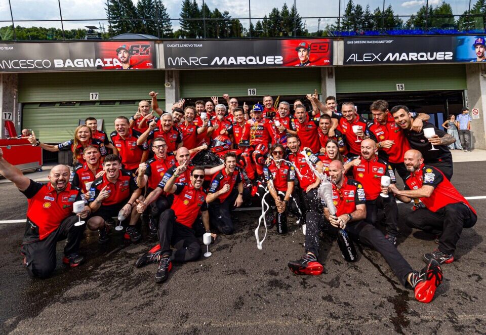 Luigi Dall’Igna (Direttore Generale di Ducati Corse): “Marc ha fatto un’altra gara straordinaria, che all’apparenza è sembrata facile ma non è affatto così. Il lavoro fatto in questa prima parte della stagione è stato perfetto e risultati si sono visti, e lui ha dimostrato davvero di essere un grandissimo campione. Siamo ancora a metà dell’opera, quindi dobbiamo mantenere alta la concentrazione. Pecco ha mostrato dei passi in avanti in gara, ed è stato bello vederlo competitivo nella seconda metà. Sappiamo che non è ancora del tutto a suo agio ma stiamo facendo passi avanti; lui sta dando il massimo, e si vede. I risultati arriveranno, ne sono sicuro”.
