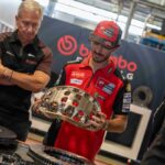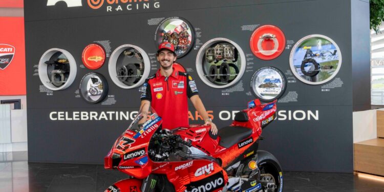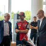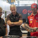 Bagnaia e il Management Ducati Corse sono stati accolti dal Top Management di Brembo, più precisamente da Matteo Tiraboschi, Presidente Esecutivo, Alberto Bombassei, Presidente Emerito, e Mario Almondo, COO Brembo Performance. All’arrivo presso l’Headquarter generale, situato all’interno del Kilometro Rosso, c’era anche la Ducati Desmosedici GP di Pecco, posizionata proprio di fronte alla nuova parete esplorativa installata da Brembo per celebrare i 50 anni nel Racing: accompagna dal claim “celebrating 50 years of passion” la parete mette in risalto le principali innovazioni proposte da Brembo, in 50 anni di storia, nelle principali competizioni Racing: dalla Formula 1 alla MotoGP, passando per il WEC, la WorldSBK, la Formula E, la MotoE, Nascar e WRC.