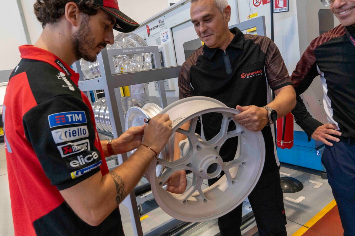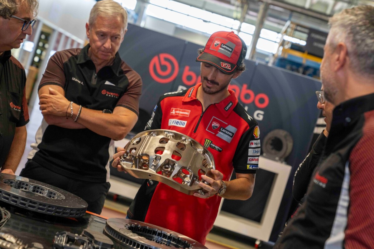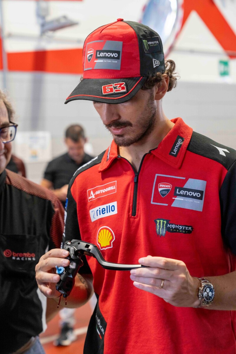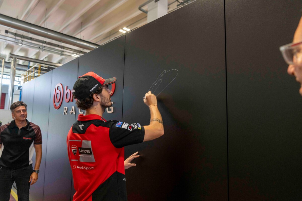 Successivamente, Pecco e lo staff Ducati Corse sono stati accompagnati a visitare lo stabilimento Racing, situato nel comune di Curno, a pochi chilometri di distanza dalla sede di Bergamo, in cui vengono prodotti anche gli impianti frenanti forniti alle moto del Ducati Lenovo Team MotoGP. Il cuore pulsante di Brembo Racing, lo stabilimento produttivo dedicato alla produzione di tutti gli impianti frenanti per tutte le competizioni mondiali. Pinze, dischi, pastiglie, pompe freno, pompe frizione e anche ruote Marchesini.