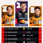 Quarto Charles Leclerc, autore di uno splendido sorpasso su Norris nelle prima fasi che l’ha portato inizialmente in terza posizione, seguito dalla Haas di Esteban Ocon, dalla Williams di Carlos Sainz, dall’altra Haas di Ollie Bearman e dalla Racing Bulls di Isack Hadjar, a chiudere la zona punti. Giornata no per le Alpine, con Franco Colapinto partito dalla pitlane dopo la sostituzione dell’alettone in parco chiuso; mentre la monoposto di Pierre Gasly è stata riportata ai box per un problema idraulico.