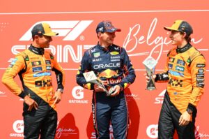 In Belgio Max Verstappen ha conquistato la sua prima Sprint della stagione (la 12° in carriera), mantenendo il comando dopo un sorpasso perfetto su Oscar Piastri nel primo dei 15 giri della gara. Al via l’australiano ha mantenuto la prima posizione, fino alla manovra dell’olandese della Red Bull, che ha resistito anche nella seconda metà alla pressione delle McLaren, con Piastri e Norris che si sono dovuti accontentare della seconda e terza piazza.