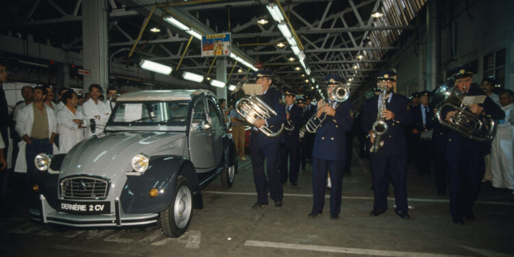 Trentacinque anni fa, il 27 luglio 1990, alle ore 16, nello stabilimento di Mangualde, in Portogallo, l’ultima 2CV uscì dalla catena di montaggio. Si trattava di una Charleston bigrigia, che fu salutata da tutti gli operai e da una banda musicale. Il successo incontrato da AX richiedette infatti che anche Mangualde, insieme ad Aulnay e Rennes, si dedicasse alla produzione di questo modello, a partire dall’autunno successivo.
