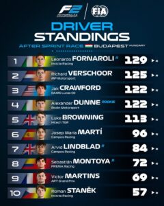 “È stata una gara tranquilla! “– ha commentato Leonardo Fornaroli – “Abbiamo dovuto gestire il degrado delle gomme per via delle alte temperature. Sul tracciato dell’Hungaroring è difficile sorpassare quindi è stata una gara d’attesa. Abbiamo raccolto due punti fondamentali per la classifica, considerando che la gara più importante sarà quella di domani. Siamo soddisfatti del risultato ottenuto quest’oggi”.