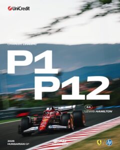 Charles Leclerc partirà davanti a tutti nel GP di Ungheria, dopo aver conquistato la pole position nel suo ultimo giro – la prima della stagione e all’Hungaroring.Soltanto 12° tempo, invece, Lewis Hamilton, fuori in Q2. La Scuderia è entrata in qualifica con quattro set di gomme Soft nuove per ciascun pilota.
