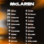 A chiudere la classifica Nico Hulkenberg, le Williams di Carlos Sainz e Alex Albon, Esteban Ocon, Yuki Tsunoda e le Alpine di Franco Colapinto e Pierre Gasly (per lui 10 secondi di penalità per aver causato una collisione con Sainz). Unico ritiro quello di Ollie Bearman, per danni alla sua Haas che l’hanno costretto a rientrare ai box.