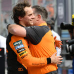 Nelle fasi finali il passo del ferrarista è crollato drammaticamente (2 secondi al giro, con team radio di fuoco e dichiarazioni contraddittorie alla fine. Leclerc che ha parlato di problemi al fondo di cui era stato informato dopo e Vasseur di problemi di pressione), mentre Piastri si è lanciato alla caccia di Norris, incollato negli ultimi giri. Ma, nonostante un paio di tentativi, il numero 81 non è riuscito a passare il compagno di squadra, che ha tagliato il traguardo con 0.698s di vantaggio, conquistando la quinta vittoria della stagione e riducendo il vantaggio di Piastri in classifica Piloti a 9 punti. E regalando anche la vittoria numero 200 al team di Woking, che oggi festeggia anche la quarta doppietta consecutiva, cosa che non si verificava dal 1988, con Prost e Senna.