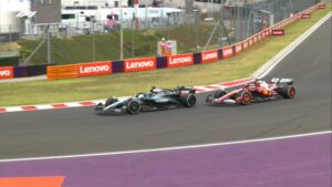George Russell ha portato la Mercedes sul terzo gradino del podio, dopo aver superato Leclerc, la cui rabbia e frustrazione si riassumono nella risposta data nelle interviste a fine gara: “Che cosa salvi della prima parte della stagione?”. “Niente“. Per lui anche 5 secondi di penalità per la guida durante il duello con Russell.