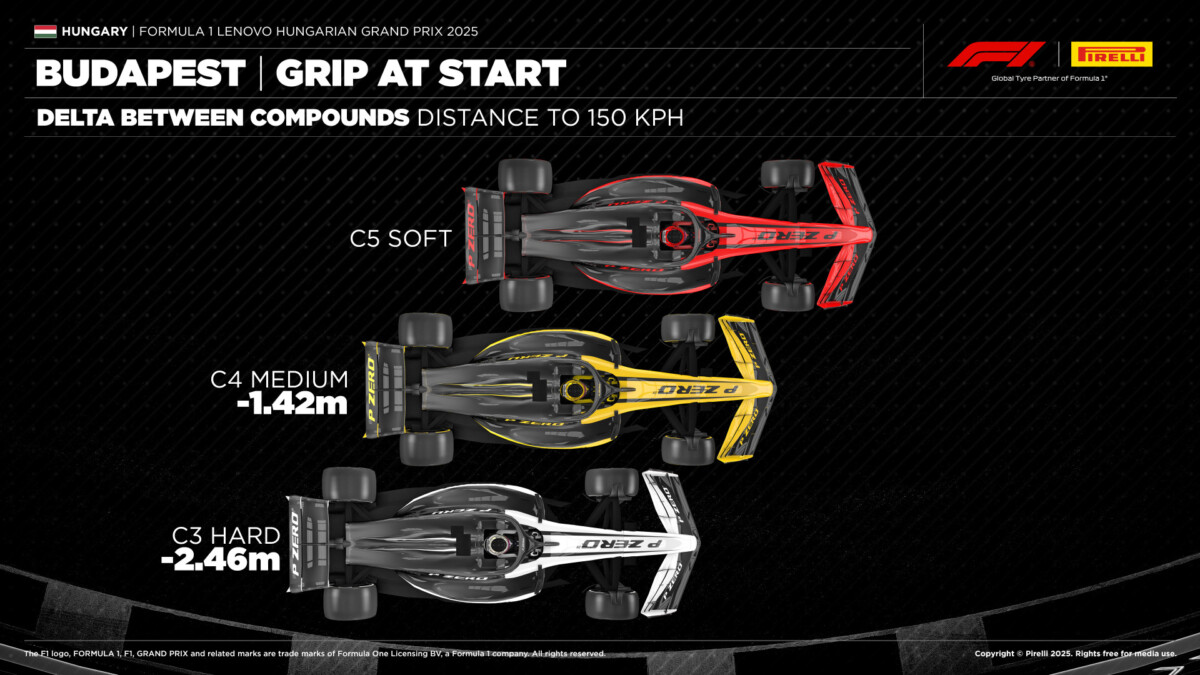 In caso di gara sull’asciutto, la doppia sosta con l’utilizzo prevalente della Hard combinata con la Medium è chiaramente la più veloce. La sosta singola con Medium e Hard protagoniste potrebbe essere scelta da chi, a centro gruppo, proverà ad allungare gli stint gestendo il degrado termico sperando in temperature nettamente più basse rispetto a quelle di ieri e dell’inizio di questa giornata. Fra le opzioni su due pit-stop, da non escludere quella che comprende l’utilizzo di tutte e tre le mescole, con la Soft da usare all’inizio per cercare di guadagnare qualche posizione nelle prime battute e poi, eventualmente, sfruttare la pista libera in occasione del primo pit-stop. Su questo tracciato i sorpassi non sono certo facili e l’undercut è molto efficace”.