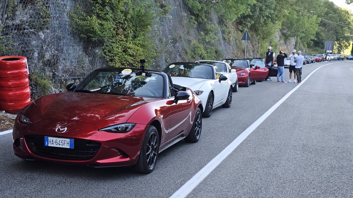 Giovanni Paradiso, capogruppo MX-5 Passion Roma: “L’MX-5 Passion Roma nasce nel 2002 dalla passione di alcuni Miatisti romani e negli anni è diventato un punto di riferimento per gli appassionati della roadster giapponese nel centro Italia. Il gruppo organizza regolarmente raduni tematici che raccolgono le MX-5 di tutte le generazioni, dalla NA dei primi anni ’90 fino alle più recenti ND creando un ponte tra passato e presente. Attraverso il forum, che conta circa 1.200 iscritti, e le pagine social su Facebook, Instagram e YouTube, il club condivide esperienze, foto, video e consigli, offrendo anche un vero e proprio “garage virtuale” dove gli utenti si scambiano informazioni tecniche e raccontano la loro passione. Ma è soprattutto durante i raduni che questa passione prende vita: eventi che uniscono chi guida la propria MX-5 da trent’anni e chi l’ha appena scoperta, accomunati dallo stesso entusiasmo per un’auto diventata leggenda. A testimonianza del nostro spirito sportivo, grazie ad ACI e a Mazda Italia, l’MX-5 Passion Roma ha preso parte alla Coppa Carotti, portando sulle curve del Terminillo il cuore pulsante di una community viva, unita e profondamente legata al piacere autentico della guida. Percorrere queste strade prima che i veri piloti affrontino questo percorso ci fa sentire come la band che apre il concerto di una grande rock star!”.