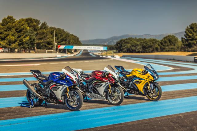 La moto celebra il suo 40° anniversario con un design rinnovato e dettagli esclusivi. Per l’occasione, sono state introdotte tre nuove colorazioni accattivanti, che richiamano le iconiche livree storiche GSX-R: BLU 40th (colorazione storica della versione 750 del 1986), ROSSO 40th (1993: livrea della moto campione del mondo con Kevin Schwantz) e GIALLO 40th (2005: colori della livrea del Team Alstare). Ogni esemplare è impreziosito dal logo del 40° anniversario posizionato sul serbatoio, sulle carene e sulla chiave. Non mancano tocchi distintivi come il logo GSX-R sul silenziatore e sulla sella, mentre le cover di spingidisco e frizione sono rifiniti in un elegante grigio e i dischi freno sfoggiano una raffinata finitura color oro, completando un look che rende omaggio alla gloriosa storia del modello.
