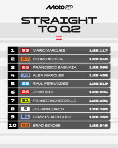 Francesco Bagnaia – 3º: “È stata una giornata molto positiva, forse il miglior venerdì della stagione finora. Ho avuto un buon feeling sia con le gomme nuove che con quelle usate. Sono riuscito a essere costante e a provare diverse soluzioni che hanno funzionato bene. Soprattutto, sono riuscito a frenare davvero forte, sentendo bene il front-lock all’anteriore, una sensazione che mi era mancata finora. Il passo gara è molto buono, anche se nel secondo time attack non sono riuscito a tirare fuori il massimo. Al momento il mio obiettivo è lottare per il podio, ma vedremo: la gara è stata finora il punto più complicato della stagione. L’obiettivo è quindi fare una buona qualifica e partire davanti, perché qui mi sento davvero bene”.